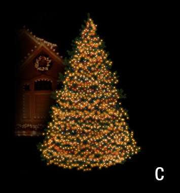 Price per tree decor depends on the number of lights as shown in A, B & C, examples.