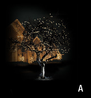 Price per tree decor depends on the number of lights as shown in A, B & C, examples.